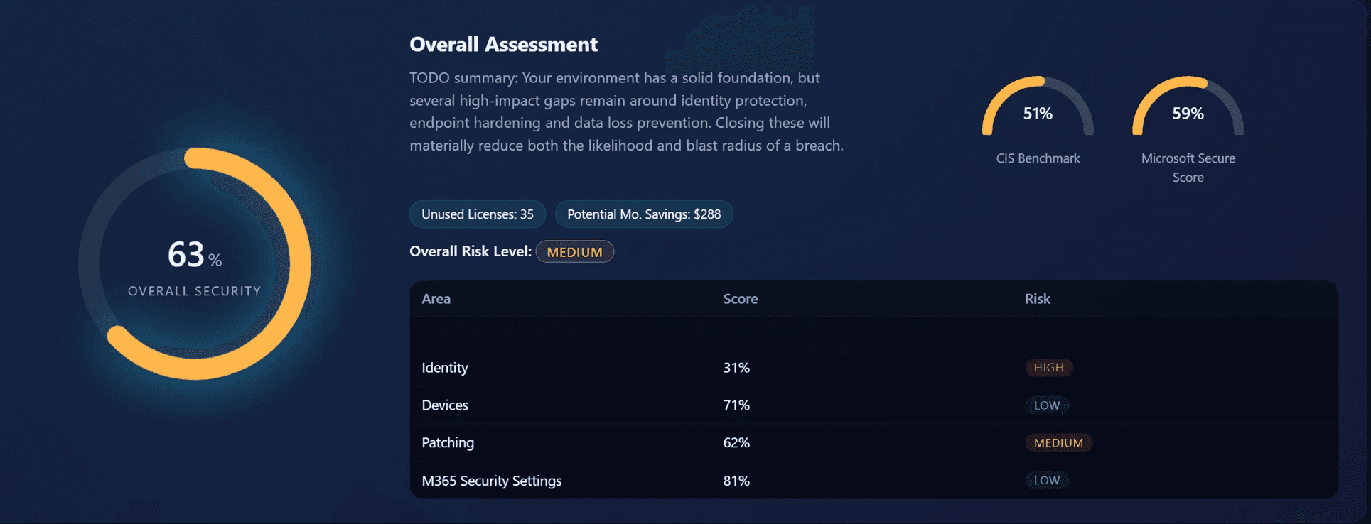 Analyze your M365 environment covering Microsoft Secure Score, Identities, Devices, Vulnerabilities, and M365 security and audit settings.