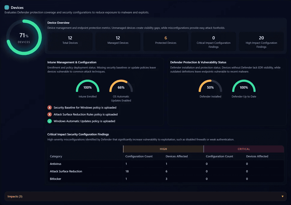 Assess device management, security baselines, and patching posture by evaluating MDM coverage, endpoint configuration, and ransomware protection across your environment.