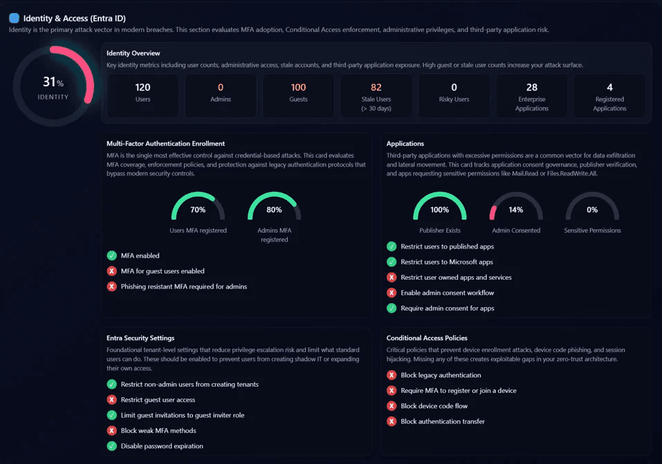 Analyze Entra ID authentication, applications, and Conditional Access policies to identify identity risk, misconfigurations, and gaps in modern security controls.